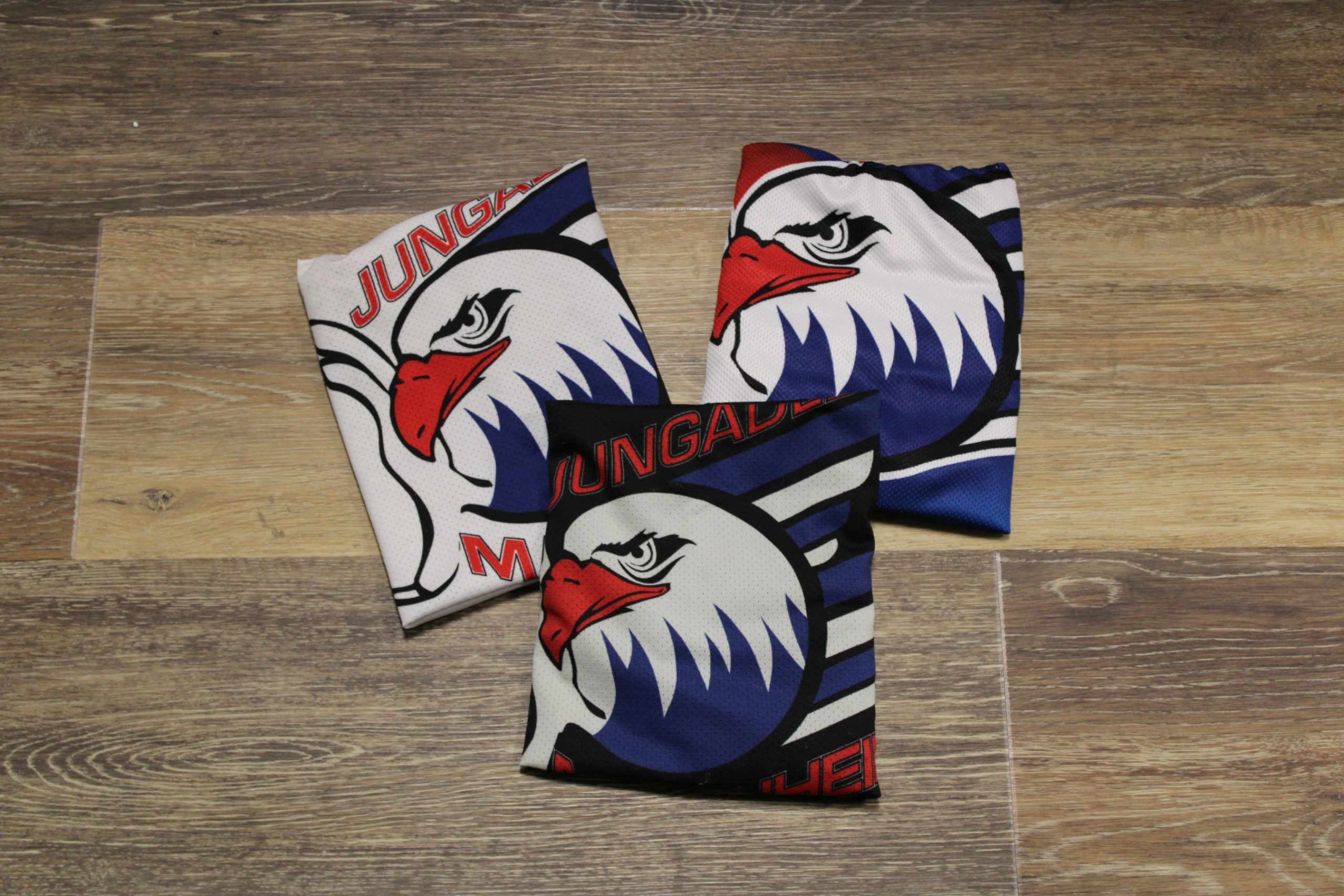 Kirschkernkissen aus alten Spiel- und Trainingstrikots in verschiednen Farben.