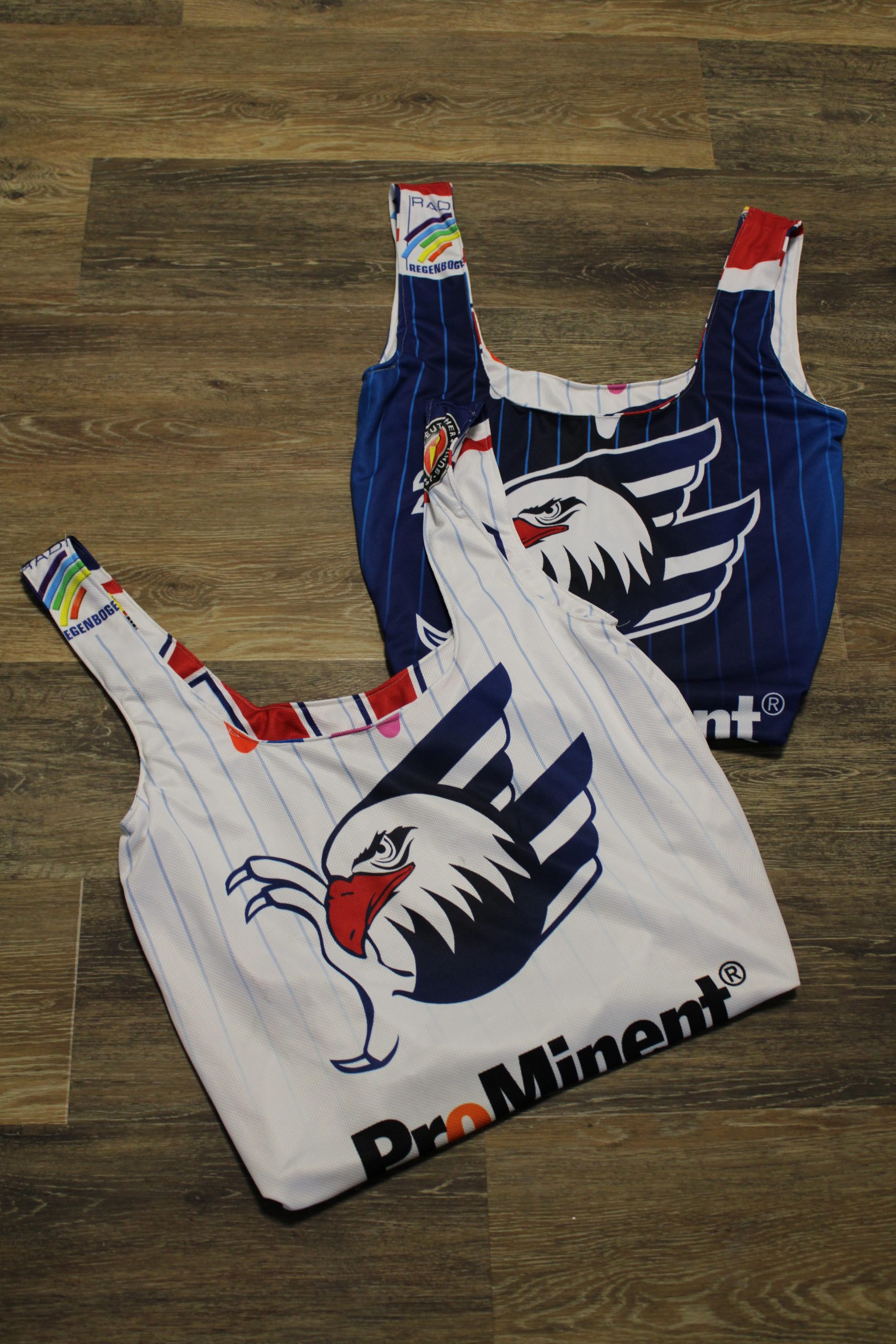 Wendetasche aus alten Spiel- und Trainingstrikots. Kann sowohl von der einen als auch anderen Seite verwendet werden.